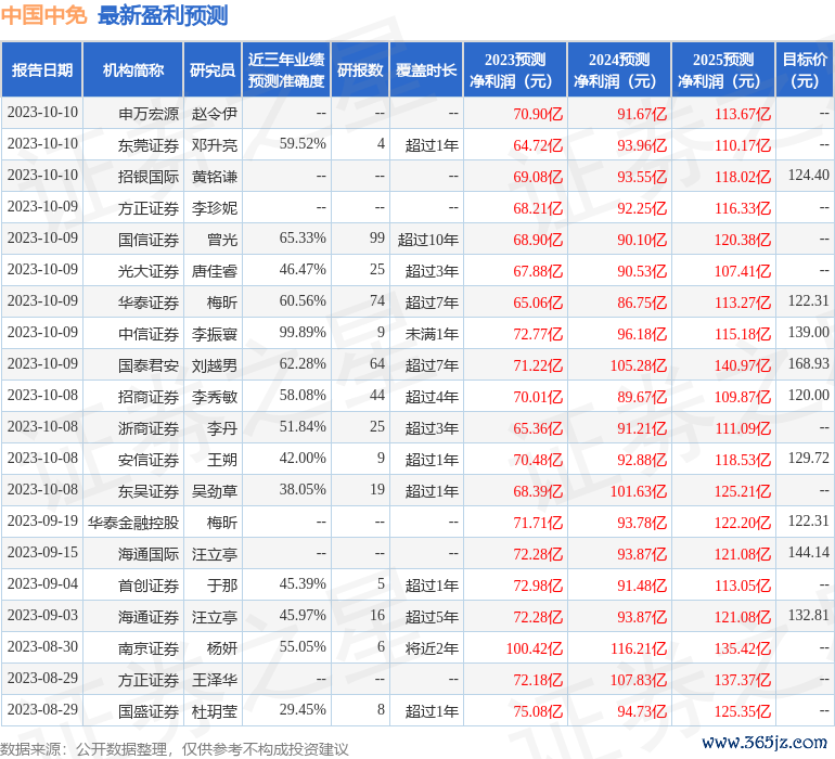 证券之星数据中心根据近三年发布的研报数据计算,中信证券李振寰研究员团队对该股研究较为深入,近三年预测准确度均值高达99.89%,其预测2023年度归属净利润为盈利72.77亿,根据现价换算的预测PE为28.68。